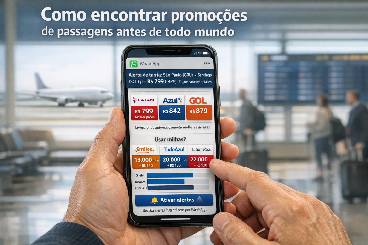 Dicas práticas para comparar voos, calcular se vale usar milhas e receber alertas de queda de preço via WhatsApp.